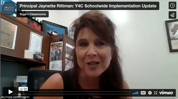 Jaynette Rittman, Edmunds Elementary School Principal, joined us at her new staff training in August, 2022 to provide an update on where they are now in their 8th year of Yoga 4 Classroom Implementation. Watch the interview.